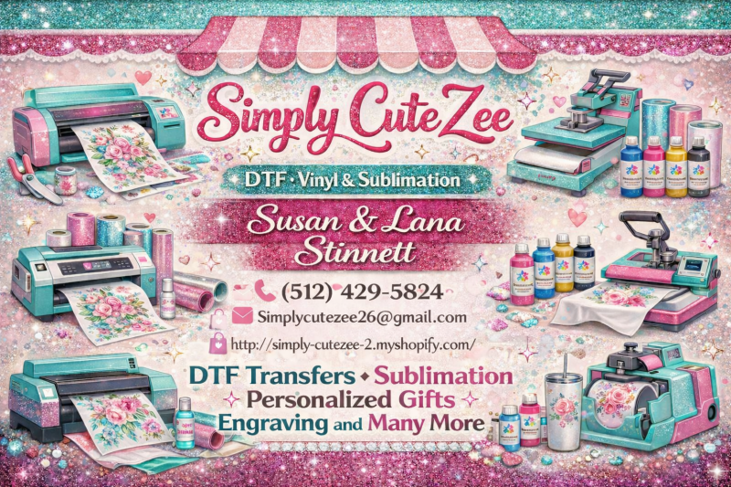 Welcome to Simply CuteZee, where your ideas come to life! We're a new online shop dedicated to bringing you high-quality direct to film prints, unique sublimation products, and precise laser engraving. Discover our commitment to fast turnaround times, personalized service, and endless customization possibilities. We're excited to help you create something truly special!